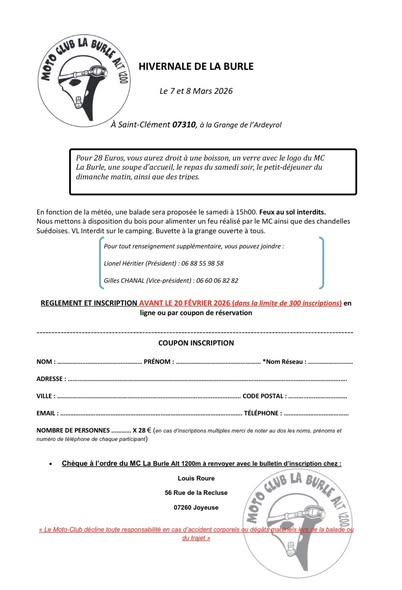 22 au 25 : Assemblée Générale du Club Moto BFG