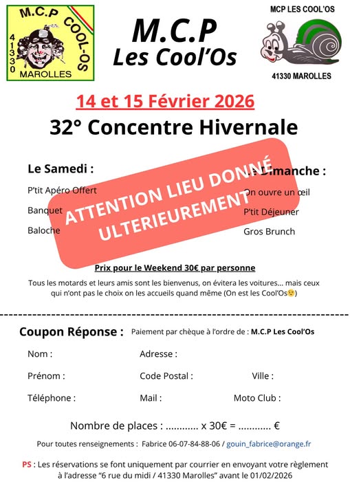 14 et 15 : 32ème Hivernale du MCP Les Cool'Os à Marolles (41)
