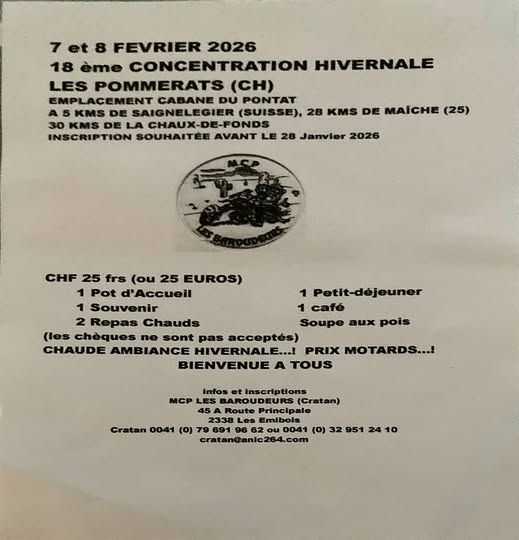 7 et 8 : 18ème Concentration Hivernale "Les Pommerats" (CH) Infos